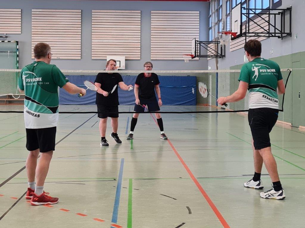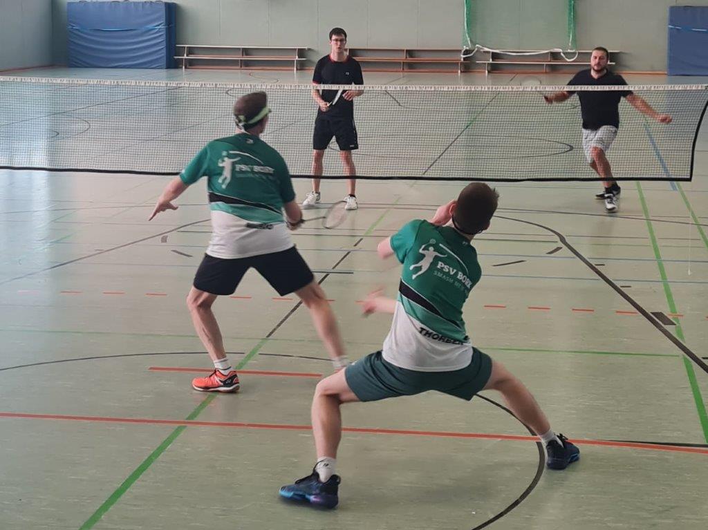 Auch gegen den PSV mussten die Bockum-Höveler improvisieren, erwischte es unter der Woche beim Training Lisa Börgmann, die mit einer Blessur am Sprunggelenk auf unbestimmte Zeit ausfällt. Aus Mangel an Alternativen stellte sich Lina Kottmann, die selbst noch an den Nachwirkungen eines Innenbandrisses laboriert, erkrankt in den Dienst der Mannschaft, so dass die TuWaner in voller Formation antreten konnten. Nach dem Wischen der Halle gelang den Gastgebern ein Traumstart mit drei souveränen Doppelerfolgen, wobei Mathias Diening/Florian Rogalski gegen Sebastian Schormann/Andreas Buschjost (21:14, 21:15), Alexander Debel/Dominic Frank gegen Thorben Dorenkamp/Mario Frychel (21:8, 21:12) sowie Lina Kottmann/Julia Börgmann gegen Sandra Moss-Malzahn/Marie Siegel (21:13, 21:9) gewannen. Der gute Lauf bekam in den Einzeln einen Dämpfer, musste Mathias Diening nach sicher gewonnenem ersten Satz in der Mitte des zweiten Durchgangs mit Problemen an der Wade gegen Andreas Buschjost aufgeben (21:14, 12:21, 0:21).
